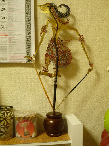 ワヤンクリのレプリカ人形にキャンドルホルダーと食材をちょこっと。