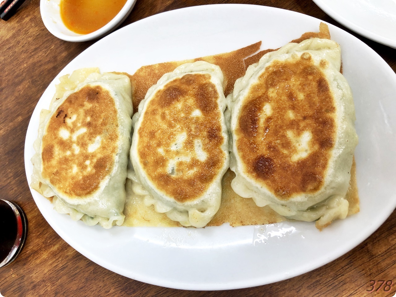 弱めの羽に薄むちな皮。餡はにらの風味がつよく味付けが濃い目。