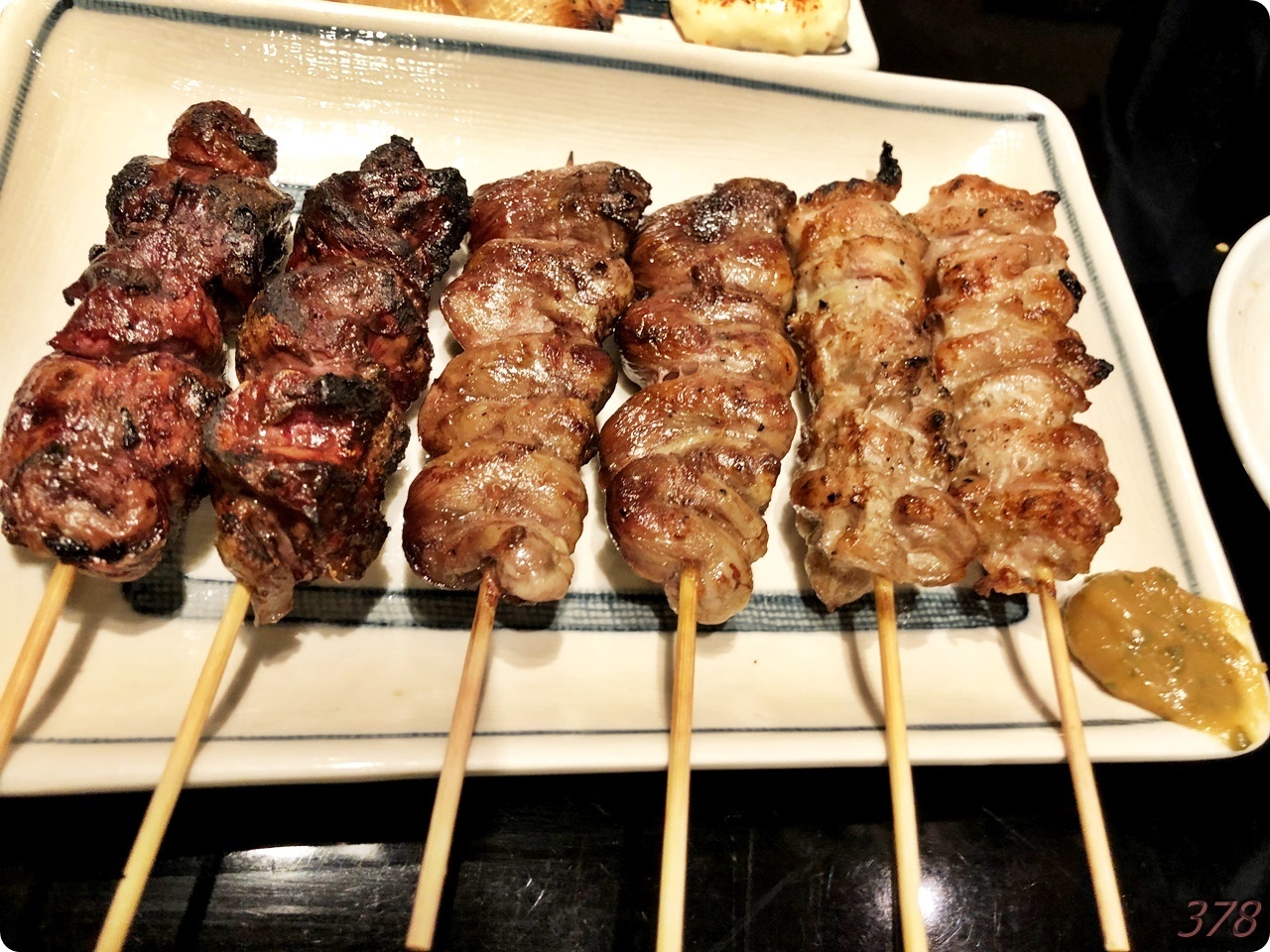 焼き鳥(せせり、はつ、レバー)にカワエビ揚げ。あと何食べたっけ?もろもろ忘れちゃったけど、