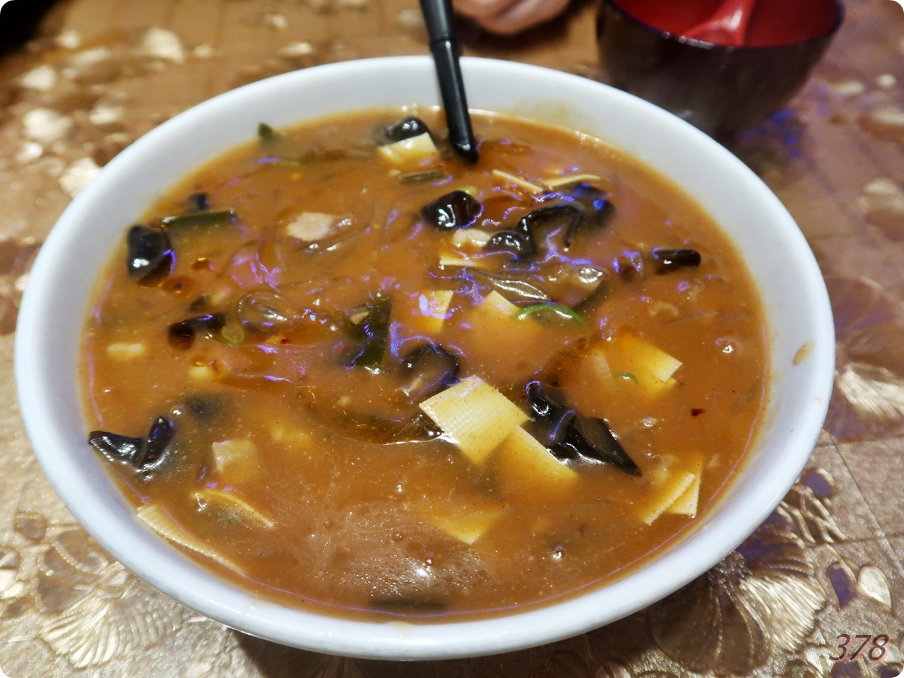 とろみのついた胡辣湯にはきくらげと豆腐干、海藻に太めの春雨がたっぷり。